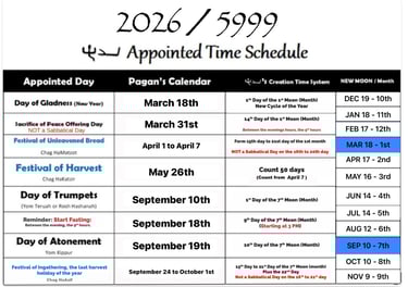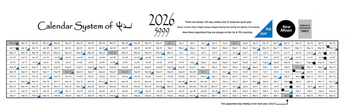 This odd calendar above is a set of like 30 days by 12 months cycle year. This equals 360 days a year. Yet, we should not rely on the exact 360 (or any pagan number such as 365, 355, or 383) days a year anyway. Stick with a simple appointed time (Creation time) system that was instructed by π€π€. Understand why π€π€'s calendar system is followed by the sign of time such as the sun, moon, and stars. The daytime and night cycle by the sun, the season-by-season cycle by the moon, and the yearly cycle are known by the starsβ movement. Knowing that 12 New Moon (Months) cycle equals one year.